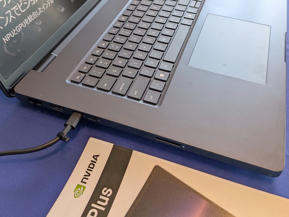 14型の「Dell Pro Max 14」と16型の「Dell Pro Max 16 Premium」は、外部GPUを搭載しても持ち運びやすいサイズ感と重量を実現したというプレミアムモデルだ。先に登場した「Dell 14/16 Premium」でおなじみの「ゼロラティスキーボード」を搭載しているが、大きく明確に区別されたタッチパッドも備えている。キーボードは日本語配列とUS配列から選択可能だ。