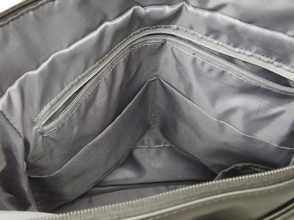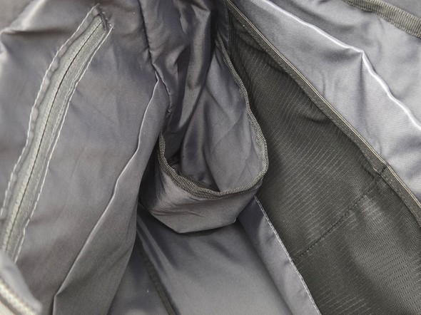 メイン気室を取り囲むように、大小さまざまなポケットを備えているのも特徴だ。背面側からPCなどを入れておけるクッションポケット、浅めのポケット、ストレッチメッシュポケット×2、ボトルポケット、オープンポケット×2、ファスナーポケットを内蔵している。