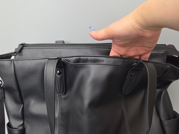 ORGULLO トートバッグは、合成皮革製の縦型2WAYトートバッグで、価格は1万5356円だ。普段は持ち手を肩にかけて使用し、両手を使いたいシーンでは付属のショルダーベルトを取り付けて斜めがけをするといった使い方ができる。