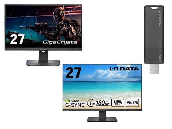 27型ゲーミングディスプレイ「GigaCrysta EX-GCU271HXAB」は、最大160Hz駆動/最短1ms応答の3840×2160ピクセルパネルを搭載している。