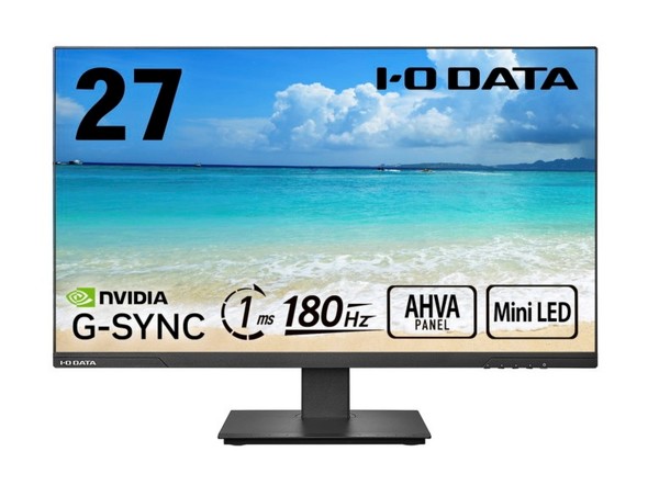 「EX-LDQ271JAB」は、Mini LEDバックライトを採用した27型液晶ディスプレイだ。パネルの解像度は2560×1440ピクセルで、最大180Hz駆動/最短1ms応答とゲーミングにも耐えうるスペックを備えている。