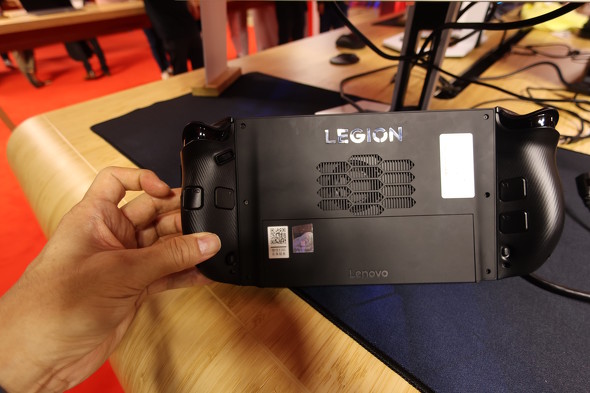 デモ機は長時間稼働していたはずにもかかわらず、コントローラー部が熱いということはなかった。底面側(手に持ったときの裏面)に大きな吸気口があり、排気口は直上(手に持ったときの上辺)にある。そのため、プレイ中に顔に熱風が吹き付けるようなことはない。エアフローはよく考えられている。