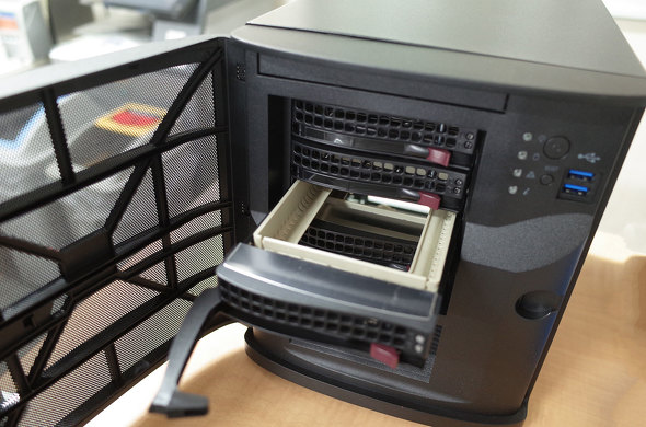 これに近いコンセプトで、Supermicro製のNAS向けMini-ITXケース「CSE-721TQ-350B2」の特価も投入している。価格は7700円だ。