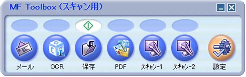 スキャナ機能をPCと連携させる付属ユーティリティソフト「MF Toolbox」は、本機のスキャナ機能の6つの動作(メール/OCR/保存/PDF/スキャン-1/スキャン-2)を手軽に選択できる。スキャンした画像をPDF/指定フォルダに保存したり、メールソフトに添付したり、あらかじめ指定したアプリケーションにデータを渡すことがワンタッチで行える。MF Toolboxを使えば、スキャンのたびにドライバを呼び出すことなくPDF化まで一気に進めるので、効率的に文書の電子化作業が行えるわけだ。