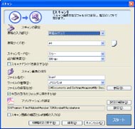 また、MF Toolboxのスキャン-1/スキャン-2ボタンにはユーザーが任意のソフトウェアを割り当てることができる。試しに筆者が普段使っているAdobe Acrobat 7.0 Standardをスキャン-1に、Googleのフリーの画像編集ソフトウェアのPicasa2をスキャン-2に登録したところ、割り当てたボタンをクリックし、呼び出された画面にあるスタートボタンを押すだけで画像データをソフトに受け渡せた。普段利用するソフトウェアが決まっているのであれば、2ステップで必要なものをデジタルデータに変換可能だ。