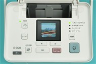 E-300:液晶モニタは2インチと小さく、角度調整ができない。メニューの項目数は少なく、上位モデルと異なり横スクロールでの操作をメインにしている。用紙選択ボタンで用紙の種類を選び、写真を表示させて印刷ボタンを押すだけで印刷できる