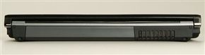 右側面の手前にDVDスーパーマルチドライブを採用(写真=左)。その直上に光学ドライブのカバーを削る形で、TypeII×1のPCカードスロットを配置しているのがユニーク。装着するカードによっては光学ドライブと干渉する可能性もある。標準のバッテリーは、容量が7.2ボルト 8700mAh(写真=右)。底面のネジを2本外すことで、SO-DIMMのメモリスロットにアクセスできる。写真では2基のスロットが埋まっているが、実際の製品では1基が開いた状態で出荷されるインタフェースは、TypeII×1のPCカードスロットとSDメモリーカードスロットのほか、USB 2.0×3、IEEE1394×1(4ピン)、アナログRGB出力、ヘッドフォン/ライン出力兼用、マイク/ライン入力兼用の端子を用意。タッチパッドのスクロール操作に対応したスライド式の指紋センサも装備している。USBポートが3基あり、左右に振り分けられているのは使いやすい。