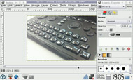 テキストエディタ「gedit」。デフォルトのフォントでは表示できない文字があるので日本語フォントを導入しておく必要がある。画面はIPAゴシック。ダウンロードしたipag.ttfを/usr/share/fonts/truetype/以下にコピーする。なお、本文でも述べたとおり日本語入力は未実装(画面=左)。「GIMP 2.6」。初期状態ではJPEGなどのフォーマットに対応していないため、Edit>PreferencesからFolders>Plug-insに /mnt/utmp/gimp-2.6/usr/lib/gimp/2.0/plug-ins を追加する(画面=中央)。ペイントソフトの「MyPaint」。筆圧検知に対応しており、豊富なペン・ブラシが特徴だ(画面=右)
