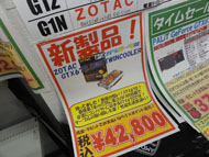 グラフィックスカードでは、先週初頭から出回っているZOTACのGeForce GTX 670カード「GeForce GTX 670 2GB TWINCOOLER」が複数のショップで人気を集めていた。リファレンスデザインのGTX 670カードより約6センチ短く、全長177.8ミリに収められているのが特徴だ。背面ブラケットは2段占有しており、価格は4万3000円弱となる。