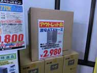 TSUKUMO eX.の5階には、IN WINのATXケース「CB-CA05M-BK」の新品がアウトレット品として2980円の値で並べられている。背面に12センチファンを備えるスチール製のスタンダードモデルだ。同店は「作りもしっかりしていてクセがないので、このお値段ならかなり引きが強いと思いますが、まだ反響はそんなにありません。ある意味、目立っていない今のうちが狙い目ですよ」とアピールしていた。