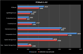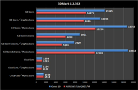 ベンチマークテストの結果を確認してみよう。評価機のスペックを改めて述べると、Atom Z3770(1.46GHz/2.39GHz)、Intel HD Graphics、メモリ2Gバイト、データストレージが32Gバイト、32ビット版Windows 8.1という内容だ。