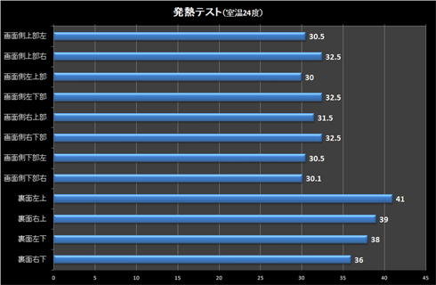 - 放射温度計でボディ表面温度を実測(室温24度)
