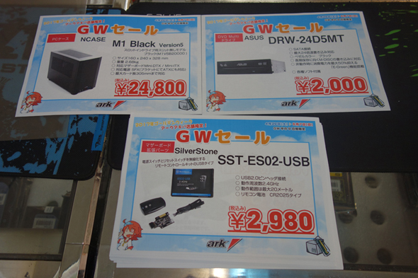 パソコンSHOPアークでは、カスタム欲をそそるアイテムが多く特価品となっていた。
