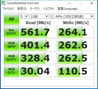 標準構成で選択されているSSD「HFS256G39TND-N210A」の速度も十分な結果といえる。この速度に満足できないヘビーユーザーの場合は、NVMe接続のSSDへの換装を考えた方が良いだろう。