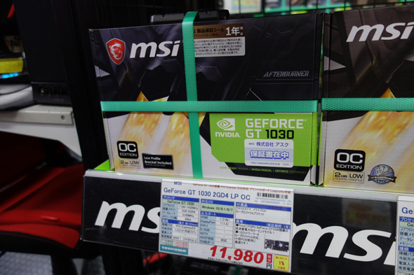 エントリーなグラフィックスカードでは、msiから「GeForce GT 1030 2GD4 LP OC」が登場している。従来から出回っている「GeForce GT 1030 2G LP OC」からメモリーをDDR4に切り替えて、ベースクロックも落とすなどして消費電力を10W低い20Wまで落とし込んだモデルとなる。税込み価格は従来モデルと同じ1万3000円前後となる。