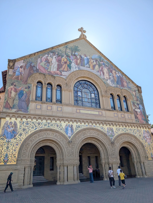 大学の中心部にある「スタンフォード記念教会(Stanford Memorial Church)」。1903年に設立されたもので、平日の日中時間帯(午前9時〜午後5時)は内部に入ることもできる(金曜日は午後1時以降は予約優先)。ガイドツアーを希望する場合は、毎週金曜日の午前11時に来るとよい