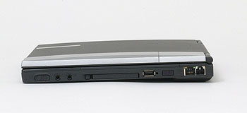 「Evo notebook N410c」の特徴は、扱いやすいフラットな筐体デザインと豊富なオプションによる柔軟な構成だ。最薄部でも25mmと、今となっては決して薄型ではないボディだが、凹凸が少なく持ち運びは意外に便利。