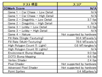 なお、念のため「3DMark2001SE」によるベンチマークテストも行ってみた。ただし、すべての項目をテストできなかったため、3DMark Scoreは算出されていない。各テスト項目の結果から3D性能を判断していただければ、と思う。