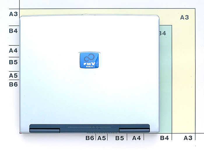 「FMV-BIBLO NH26C」はデスクノートと呼ばれるジャンルの製品。本体も大柄で、3.7kgという重量は持ち歩くには適さない。スクエアな筐体にはグレースブラックメタリックと呼ばれるメタリック色の塗装が施され、シンプルで飽きのこないデザインになっている。付属のACアダプタもノート型としてはかなり大柄だが、家の中で移動して使う分には問題ないだろう。