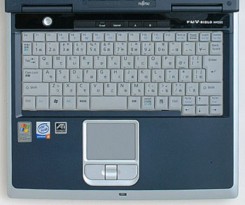 キーボードはキーピッチ19mm、キーストローク3ミリの90キーを採用している。ベース部分に剛性感があるため、一部の製品にみられるようなキーボードの中央部分のたわみもなく、打鍵感は良好だ。ポインティングデバイスはタッチパッド式を採用し、スクロールボタンを備える。このほか、4つのワンタッチボタンを装備しており、Webブラウザやメールソフトの起動がワンタッチで行える。メールボタンにはLEDが付いており、メールの着信時に点灯する。また、USB接続の光学式マウスが付属する。