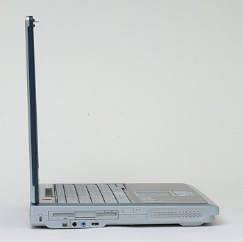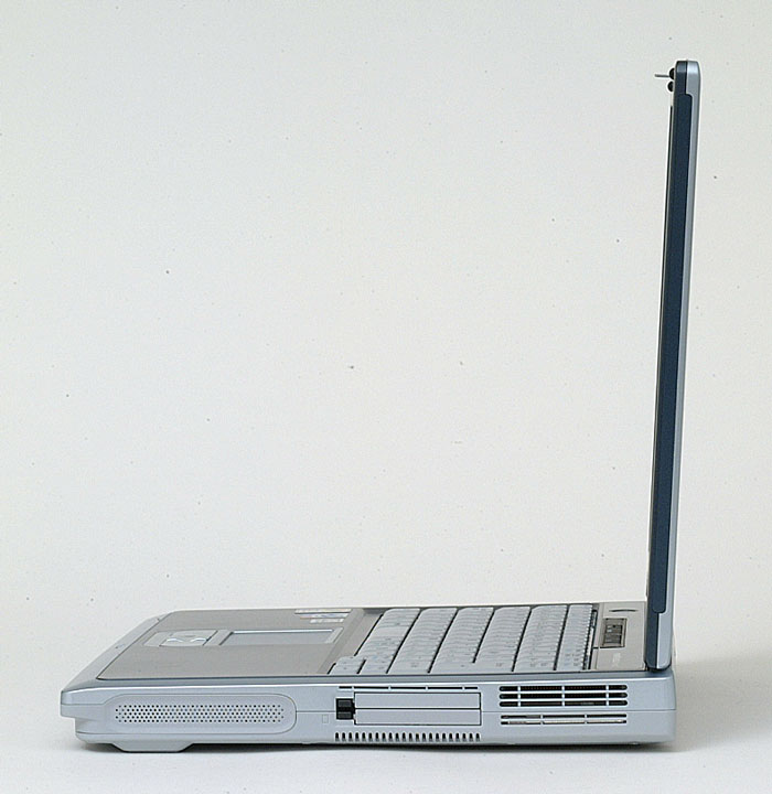 本体右側面。手前側にスピーカーの開口部がある。PCカードスロットや通気ダクトも設けられている(クリックすると拡大します)
