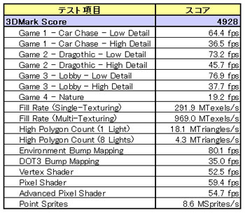 3DMark2001SEのベンチ結果(クリックすると拡大します)
