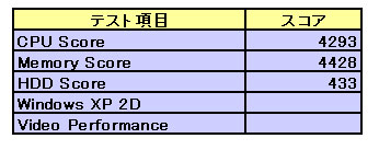 「CPU Score」の4,293という値は、Pentium Mらしい良好な結果である。「Memory Score」の4,428という値も、DDR SDRAM/SO-DIMM PC2100搭載マシンの中では比較的よい結果といえるだろう。ビデオ性能も非常に好成績だ。