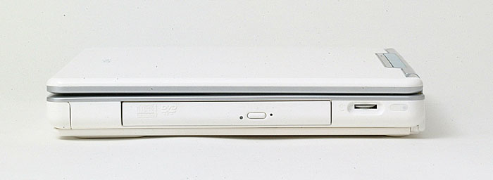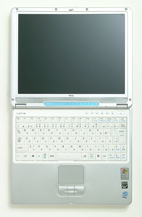 液晶を開けると、シルバー&ホワイトのツートーンカラーになる。キーボード部分は、外装と同様のホワイトカラー。全体的に丸みを帯びたデザインは、パソコンに対して抵抗を抱いているユーザーにも安心感を与えるつくりとなっている。