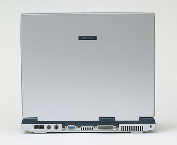 本体背面には、Ethernet、モデム、Sビデオ出力、キーボード/マウス(PS/2互換)、外部ディスプレイ、パラレル、セキュリティロックが配置されている(クリックすると拡大します)