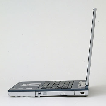 EdiCube R855シリーズに搭載されているインタフェースは、なかなか豊富である。USB 2.0×4、IEEE1394×2、PCカードスロット、Sビデオ出力、S/PDIF出力、外部ディスプレイなど、基本的なインタフェースはすべて揃っている。通信機能では、無線LANや赤外線通信までサポートしている。インタフェースの種類は、最新のノートPCとして十分に合格点を与えられるレベルだ。