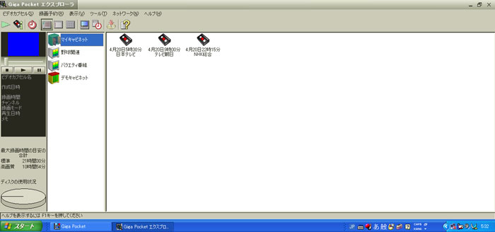 Giga PoketでTV番組をハードディスクレコーディング