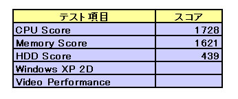 PCMark2002Proにおける「CPU Score」は1728。一般的なノートPCと比べると悪い結果だが、ミニノートPCとして考えれば標準的な値といえるだろう。いっぽう、「Memory Score」と「HDD Score」は、なかなか健闘している。同じCrusoeマシンであっても、メモリとHDDが高速であれば、そのぶん全体的なパフォーマンスも向上する。特に、容量の大きいAVファイルを多用するバイオC1 PCG-C1MZXにとって、HDD性能は重要である。このあたりは評価できるポイントといえるだろう。