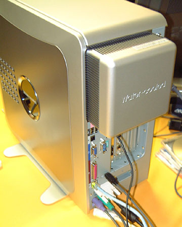 VALUESTAR FZ後面。これだけ水冷ユニットが飛び出る格好だ