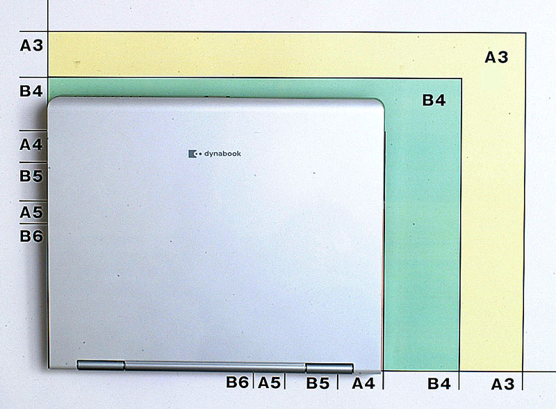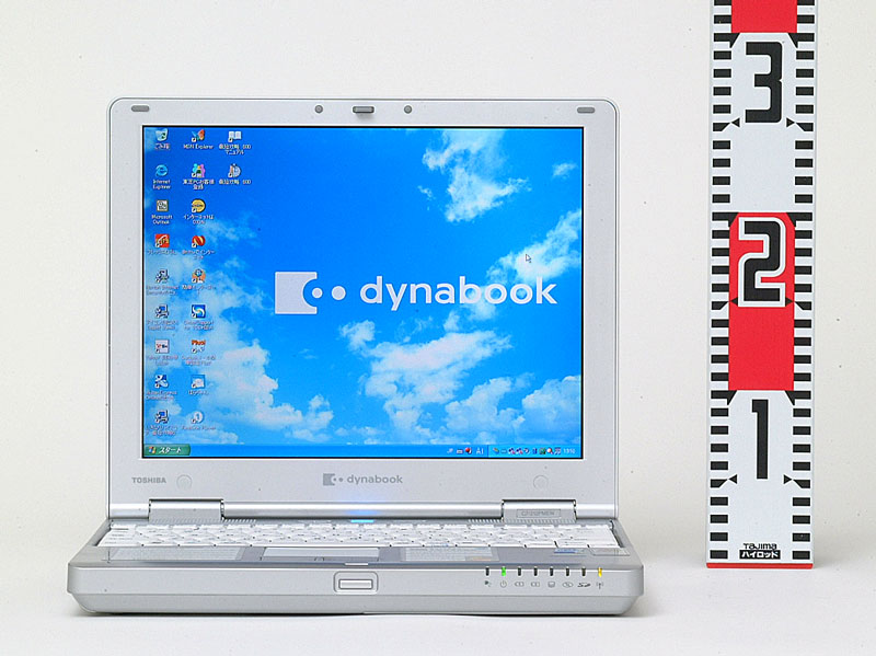 液晶背面は上品な光沢のあるパールホワイト。「dynabook」のロゴも目立ち過ぎず、シンプルにデザインされている。本体サイズは289(W)×238(D)×35.5(H)mm、重量は約2.1kg(クリックすると拡大します)