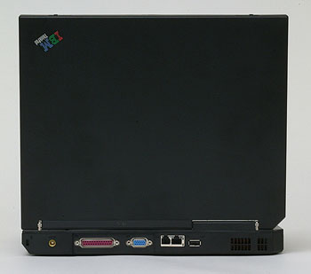 本体背面。ディスプレイ出力、パラレル、USB 1.1×1、モデム、Ethernetなどが並ぶ(クリックすると拡大します)