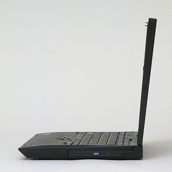 「ThinkPad R40e」のボディカラーは、ThinkPadシリーズでお馴染みのThinkPadブラックを採用している。他社製品のような華やかさはないものの、仕事のパートナーとしての貫録はある。廉価モデルといえども、安っぽさは感じられない。