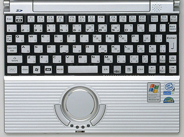 ポインティングデバイスは、操作面が円形になっているタッチパッド「ホイールパッド」を採用している。付属のユーティリティを使うとタッチパッドの縁をくるくるなぞるとホイールするようにでき、シャトルリングのように使えるため、慣れると使いやすい。とはいえ、すでにスクウェアなタッチパッドに慣れた人にとっては、とまどうこともあるかもしれない。