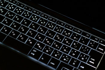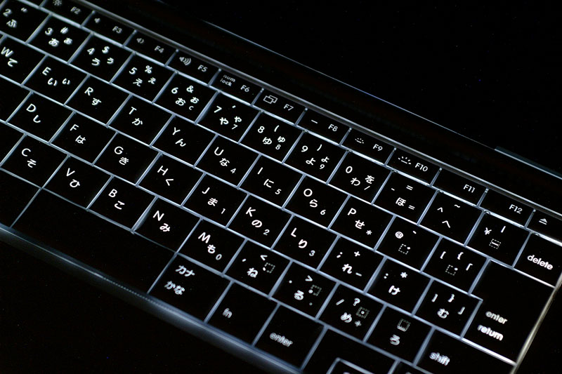 アンビエントライトセンサーにより、周囲が暗くなるとキーボードのバックライトが自動的に点灯する。白く浮き上がるキートップの文字もきれいだ(クリックすると拡大します)