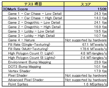 いっぽう3DMark2001SEの結果は、「3DMarkScore」で1,509。3Dグラフィックス性能は、特に優れているわけではない。ちょっとした3Dゲームを楽しむことができる、といった程度である。