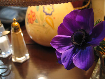 暗い、外光がほんのり向こうから差している喫茶店の店内にて花を撮影。色が鮮やかなのはもちろん、暗い影にもほとんどノイズが見られないし階調も滑らか。さすが1/1.8型400万画素CCDといっていい絵だ。絞り:F2.8、露出:1/2sec(オリジナル画像はこちら)