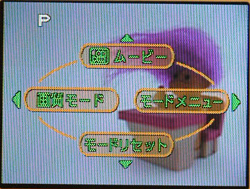 背面にボタンがほとんどないことも合わせて、かなり思い切って機能を削り、初心者が余計なメニューの迷路に迷い込まないように考えられているといってよい。迷い込んだときは、モードリセットでいったんリセットすればいいのである。液晶モニタは1.8型と少し大きめのものを採用している。