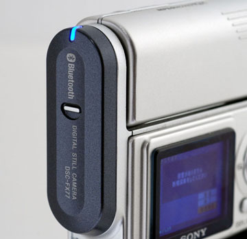Bluetooth機能を使うときは、側面のBluetoothモジュールに付いているボタンを押す。すると青色LEDが点灯し「受信」「送信」「プリント」のメニューが出るので、目的の機能を選ぶ。もちろん回りに通信相手が必要だ。