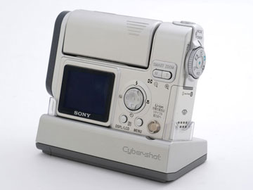 記録メディアはメモリースティックで、メモリースティックPROにも対応。バッテリはCサイズのインフォリチウムバッテリで、クレードルにセットすると充電される。