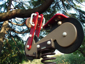 回転レンズを活かして、公園の遊具を地面スレスレからローアングルで狙ってみた。逆光気味でコントラストが高いシーンだが、不自然な白飛びもなく、露出もきれいに決まっていて発色もよい。さすが400万画素という絵だ。絞り:F2.8、露出:1/125sec、露出プログラム:ノーマル(オリジナル画像はこちら)