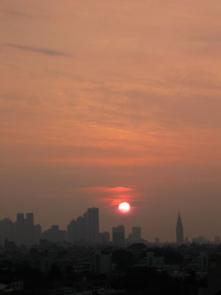 午前4時半過ぎ、新宿高層ビル街から上る日の出を望遠端で撮影。風景モードを使用し、露出補正などもかけてない。色効果もオフ。いい感じに絞られて、朝の空が鮮やかに描かれている。不自然な飛び方もしてない。1/125秒、F5.6(オリジナル画像はこちら)