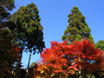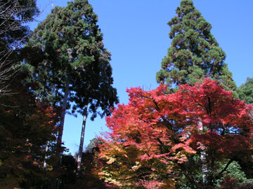 もう一つ例を挙げよう。これは昨年の秋、京都で紅葉を撮ったときのものだ。一方はフルオート。もう一方はホワイトバランスをデイライトに固定し、彩度を+5、コントラストを−5にして、ちょっと極端に差をつけて撮ったものだ。