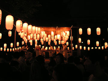 例を出そう。これは夜に盆踊りの会場を撮影したものだ。オートでは色温度が低い提灯が完璧なまでに白く補正されてしまい、雰囲気が台無しになっている(ここまで強力に働くホワイトバランスも珍しい)。だからホワイトバランスを変更して撮らねばならない。太陽光にすればこのように赤く写る。
