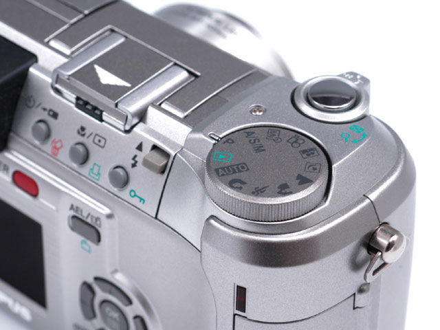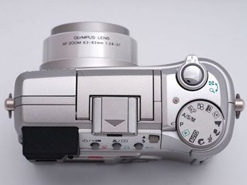 モードダイヤルには12のポジションがある。ズームレバーはシャッターボタンの外周部にある。これはC-4100 ZOOMやC-5050 ZOOMと同じデザインだ。ストロボはポップアップ用のスイッチを押さないと出てこないので、無用な発光を防ぐことができる