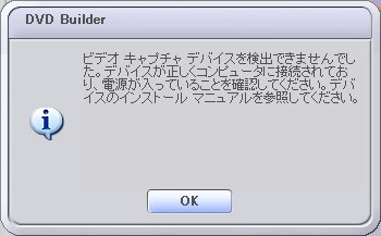 ![]() 「リアルタイムレコーディング」を選んでもUSB経由のキャプチャー機器は使えない メディアコンバータなどを介せばDV機器経由でTVやビデオをキャプチャーすることは可能だろうが、安価な内蔵・外付けキャプチャー機器が増えている現状を考えると、DV機器以外からの録画も行えるようになって欲しいところである。 残念ながらメディアコンバータは持っていなかったので、その代わりにDVカメラを接続してみた。接続後に電源をいれると、今度は認識したようである。