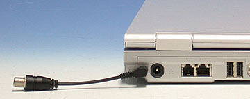 ![]() TVアンテナ接続ケーブル(同梱)を装着したところ ネットワーク機能は、10BASE-T/100BASE-TX対応Ethernet、V.90(世界61地域)対応の56kbpsモデムを搭載する。家庭利用が中心とはいえ、無線LANが標準装備されていない点は評価の分かれるところか。 サウンド機能はAC97に準拠し、左側面にマイク、前面部の左右にステレオスピーカーを内蔵する。CD再生やDVD再生の音質は良好だった。